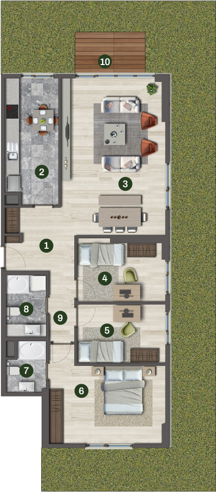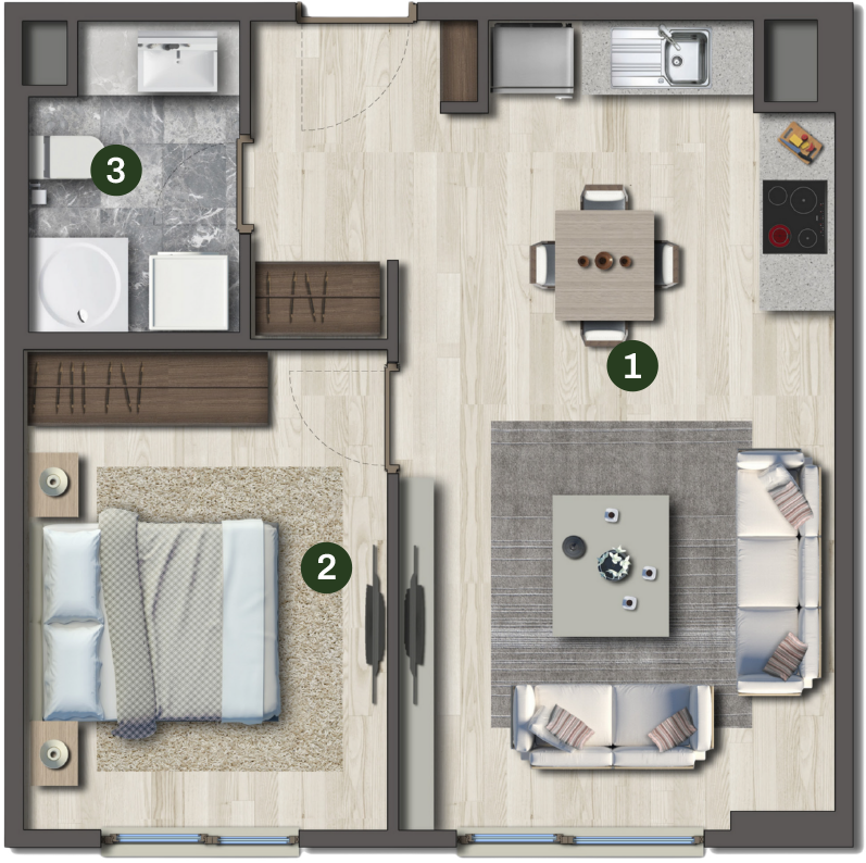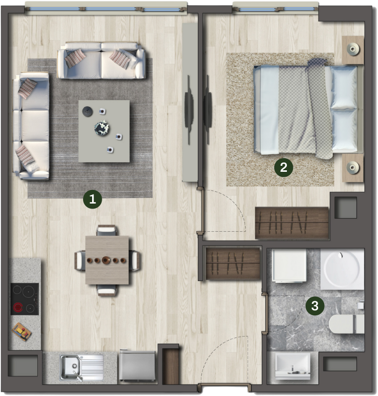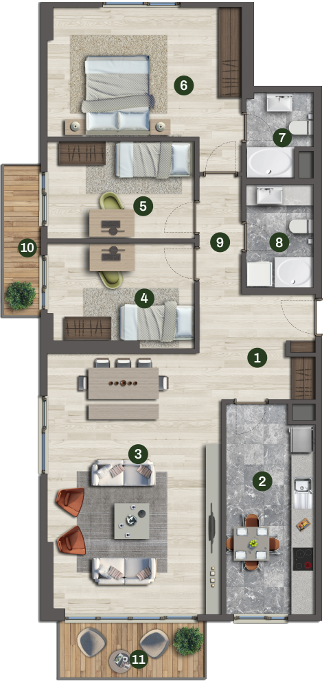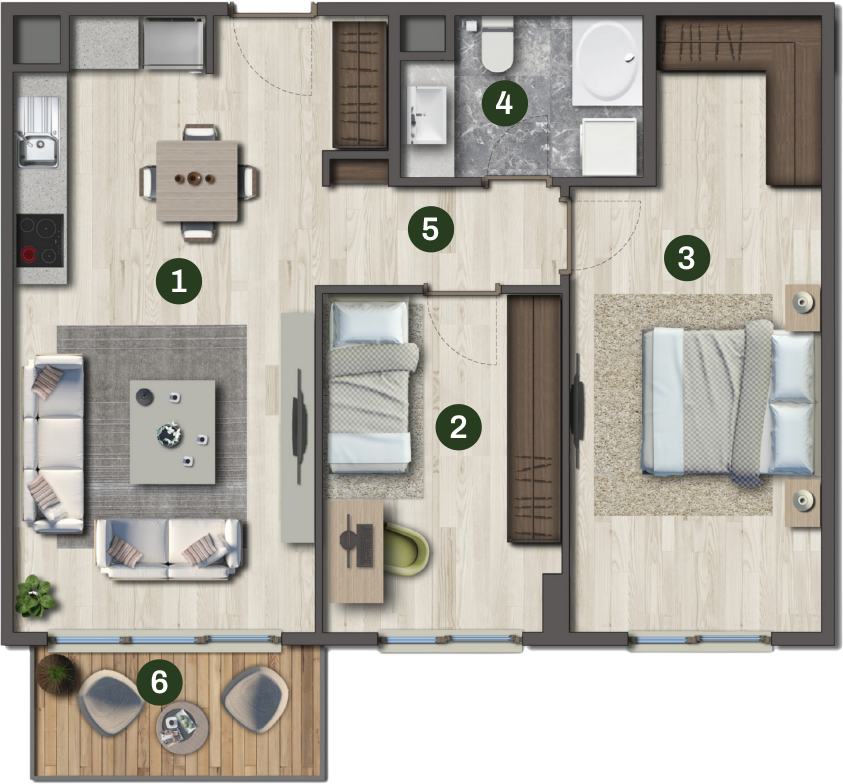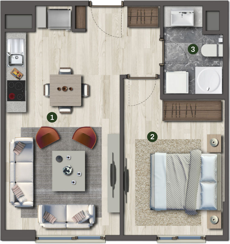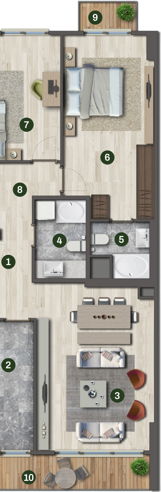 Yatay mimariyle planlanan daireler, ferahlık ve kullanım kolaylığını bir araya getiriyor.
