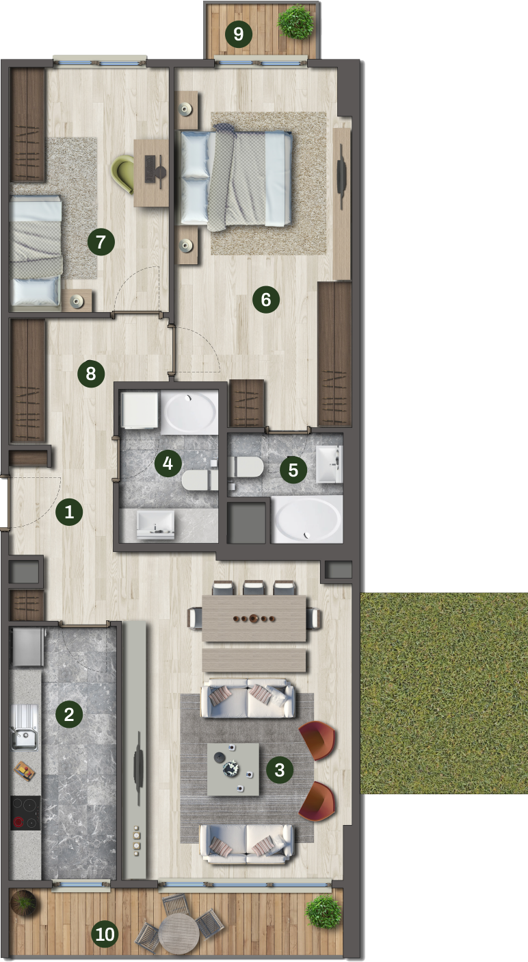 Talep FormuModern mimari, yeşil alanlar ve huzurlu yaşamın bir araya geldiği özel bir deneyim.