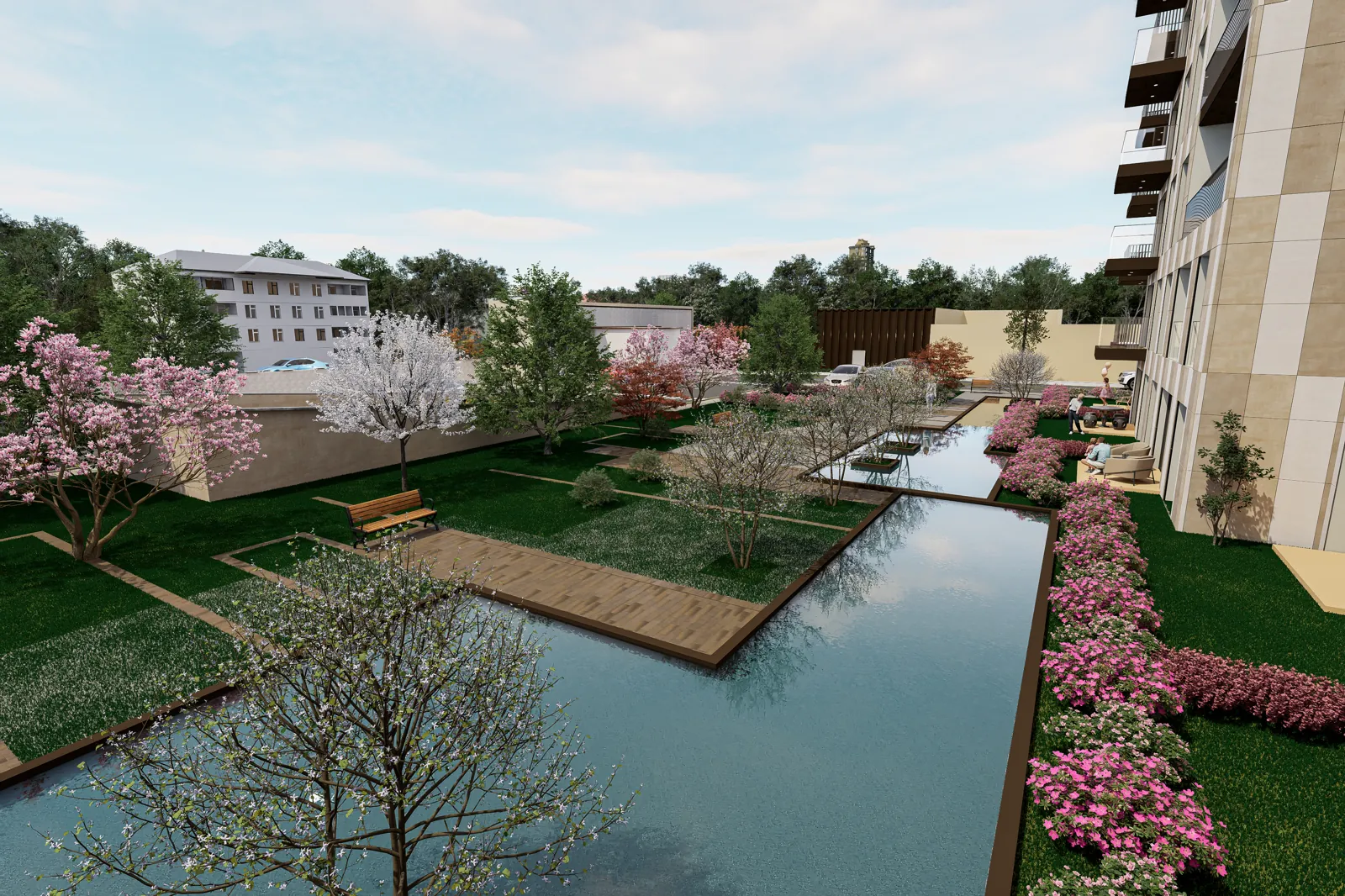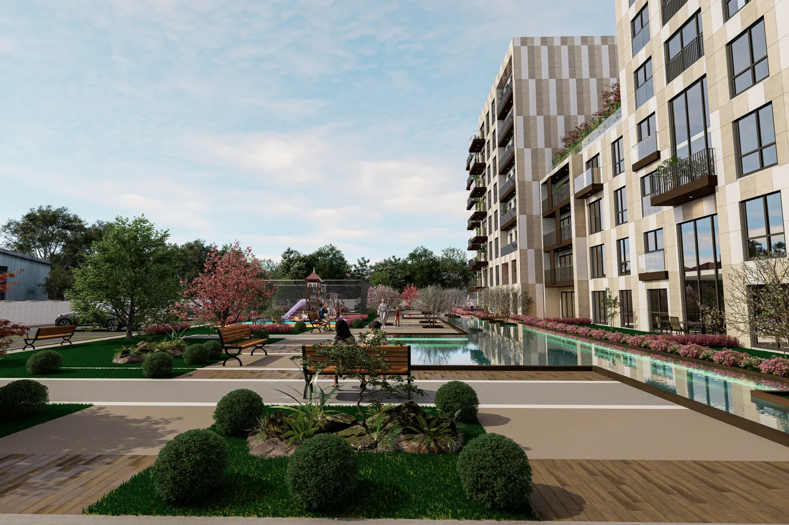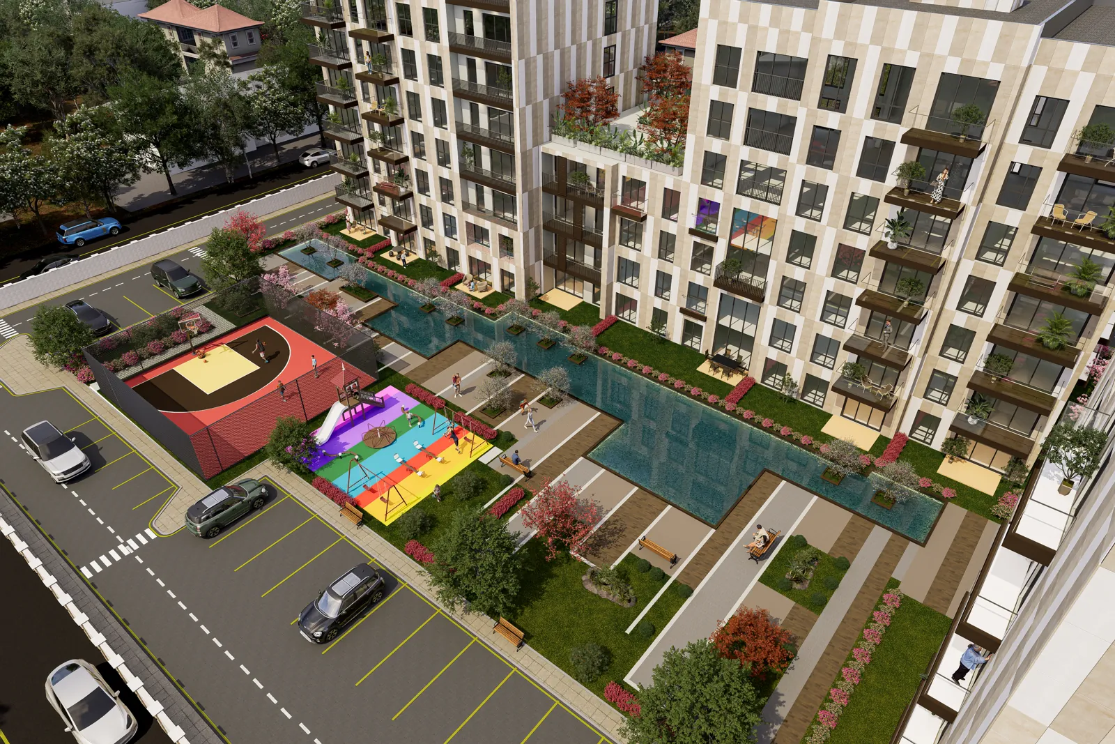 Havuz, estetik tasarımı ve çevresindeki yeşil alanlarla projeye ferah bir görünüm kazandırıyor. Sakinlerin gün içinde huzur bulabileceği, sosyal yaşam alanlarını tamamlayan dingin bir atmosfer sunuyor.